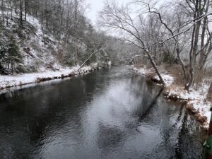 The Gunpowder River is clear and flowing at 150 Cfs at 37.4 degrees F. Trails are icy! Now is the time to stud up your wading boots and bring along a wading staff. Fish have been holding along the edges in the shallows, but with flows up and with the river bank-full using the trails and concentrating on drops and jams with a sink -tip and an articulated streamer might be a better bet. Nymphing has been tough in these heavier flows so getting down with a tungsten jig with a zebra midge will still produce on shelves. Fish later in the day if you …