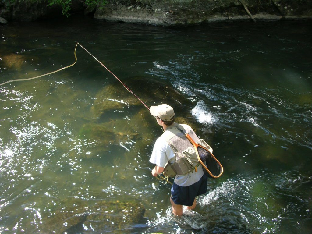 Tax man got you down? Shake off all that math on the Gunpowder River in our turn-key fly fishing schools. Whether you are from D.C., Northern VA, or South Central PA-find out what folks in the Baltimore Metro area already know-the Gunpowder is likely the closest wild trout stream to your doorstep. If you can catch fish here you can catch them anywhere! We have still two openings each in our 11 AM fly fishing schools for April 14th and April 20th. Call us at 410-967-3526 to reserve a little bit of tranquility and learn a lifetime sport! Participants will need a freshwater license and a trout stamp that can be purchased at the shop the day of the school. Here is a shot of Alex McCrickard fly fishing the boulder pools.