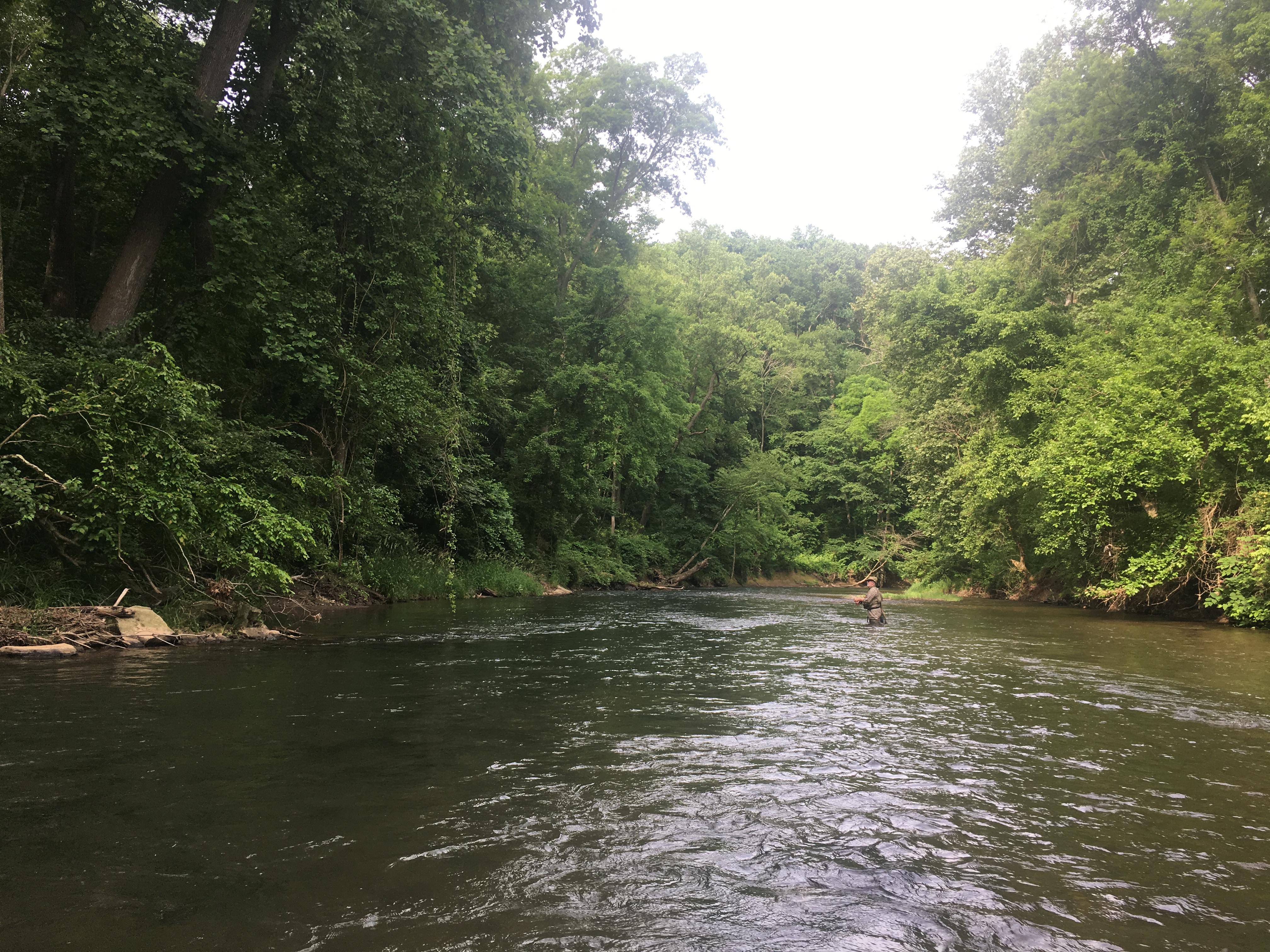 On Tuesday whilst sight fishing to trout at 30 cfs, we started noticing increasing wood and debris coming past us. A couple of minutes later the river was chocolate milk. The water has come up again from Prettyboy Dam to a nice 150 cfs at Falls road. Now the water is clear again, the fish have spread out & fishing is good. Catch some fish this weekend, stay cool and enjoy!