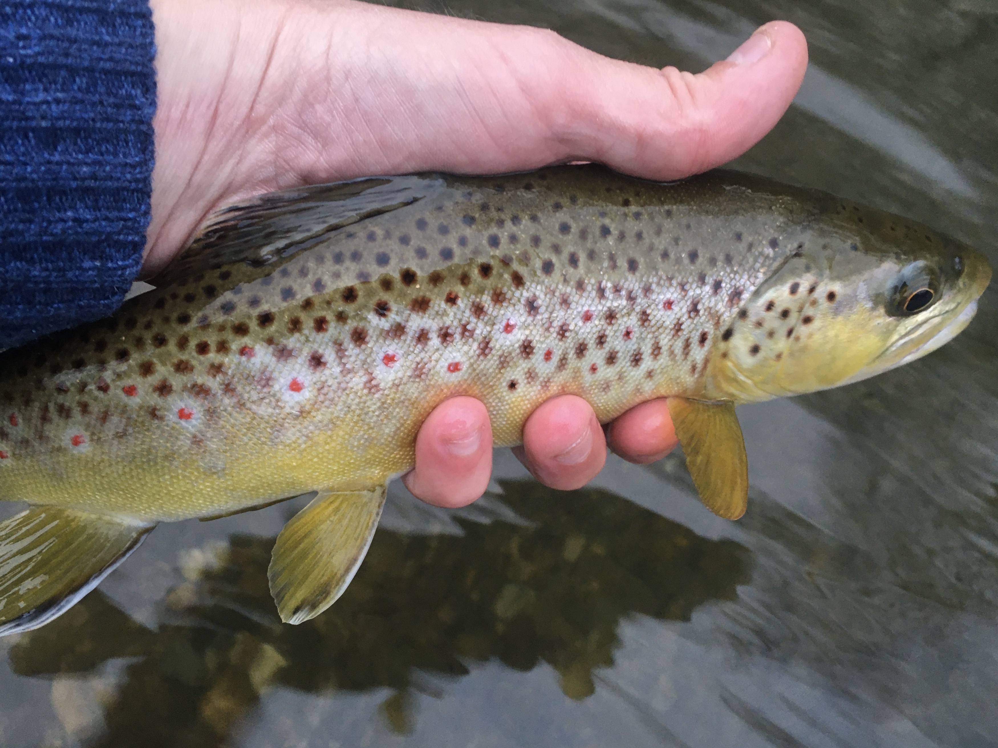 The trout have been active and very hungry in the Gunpowder. Trout can be seen aggressively feeding on stoneflies and midges throughout slower water, with an occasional sulphur being taken. Nymphing has been an effective tactic as well, although the excessive amounts of Didymo presently in the water (particularly around Falls road and above) can make it a tedious process.