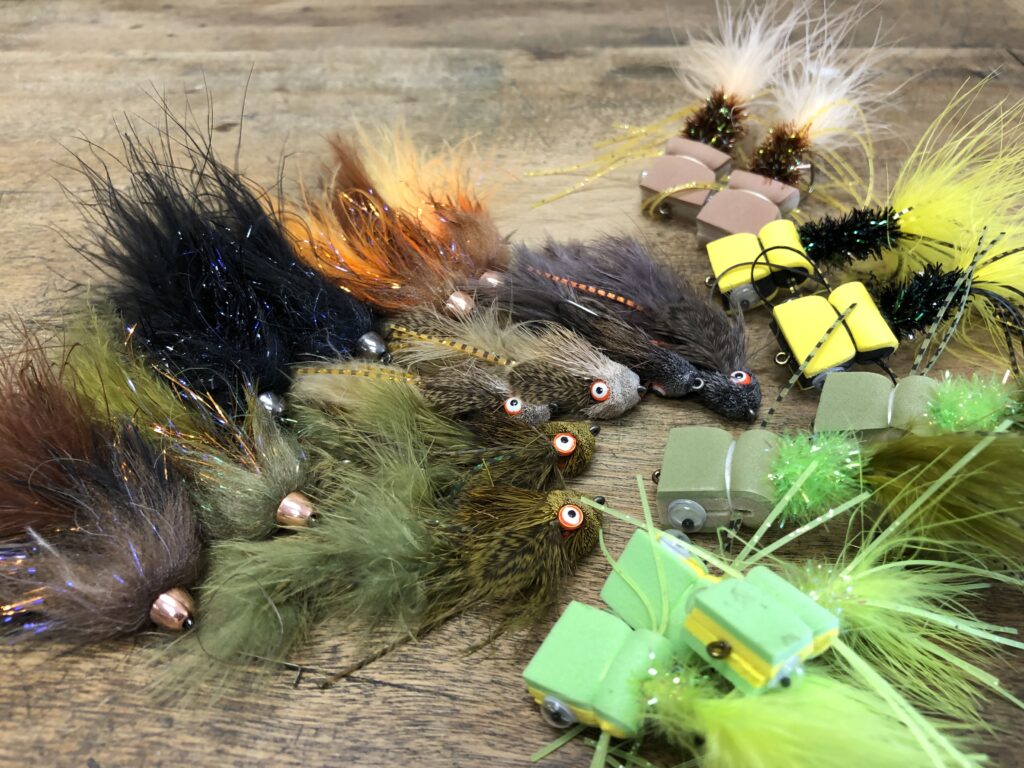 We have a range of different leaders and tippets between 0x and 3x that will work perfectly for the conditions on the river. We offer several weighted streamers and some poppers that should get the bass to strike on the surface as summer gets closer.