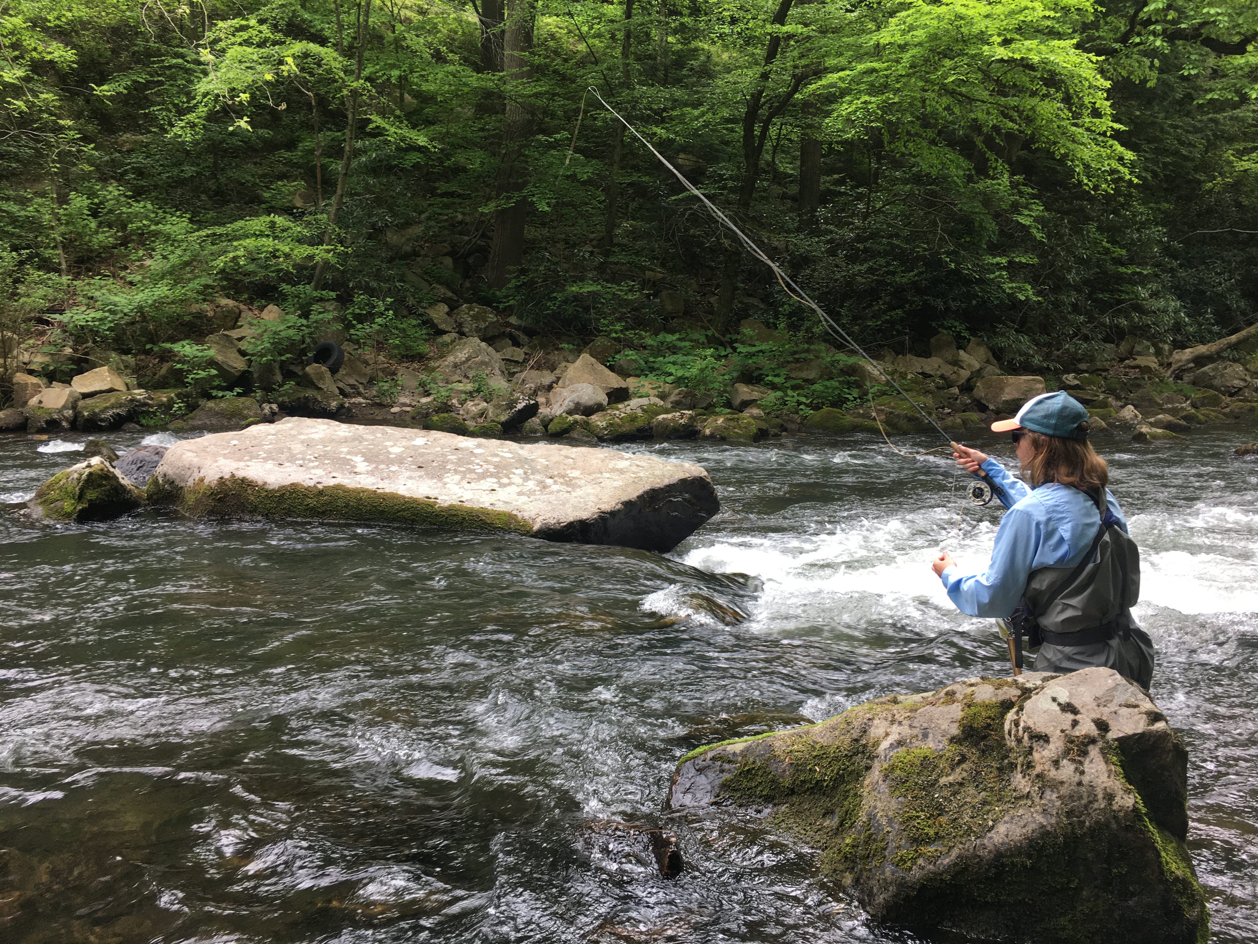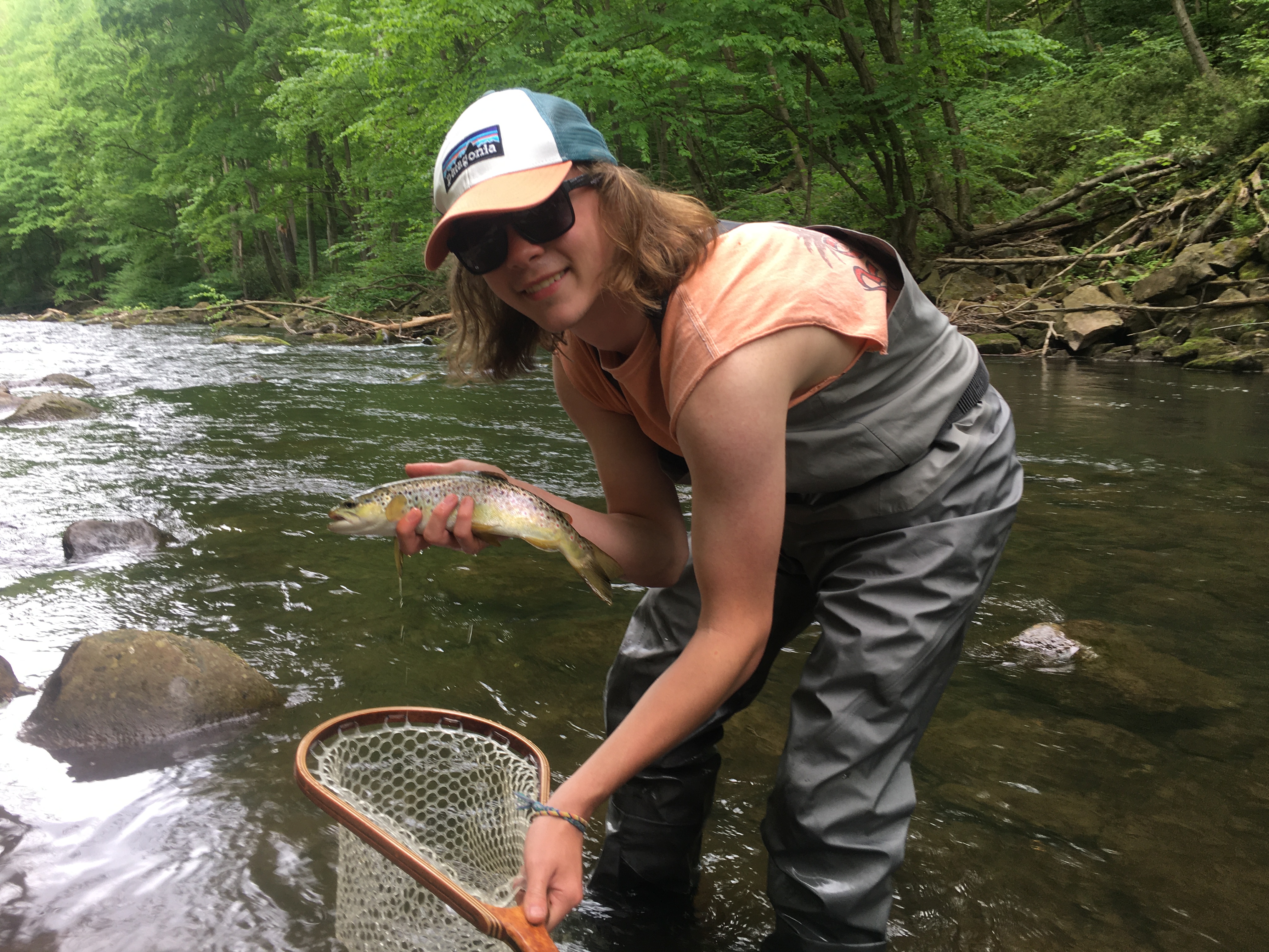 Sulphurs & Blue Quills were the most predominant mayfly on the river and tan and black caddis were present in large numbers. By the early afternoon, fish could be seen rising consistently to sulphurs. The most spectacular time is the last minutes of the day. Near dusk, the spinner fall gave me the opportunity to see the large amount of fish within each pool and target some of the bigger fish. When fishing in the morning, I fished small nymphs with splitshot to keep flies down in the water column.