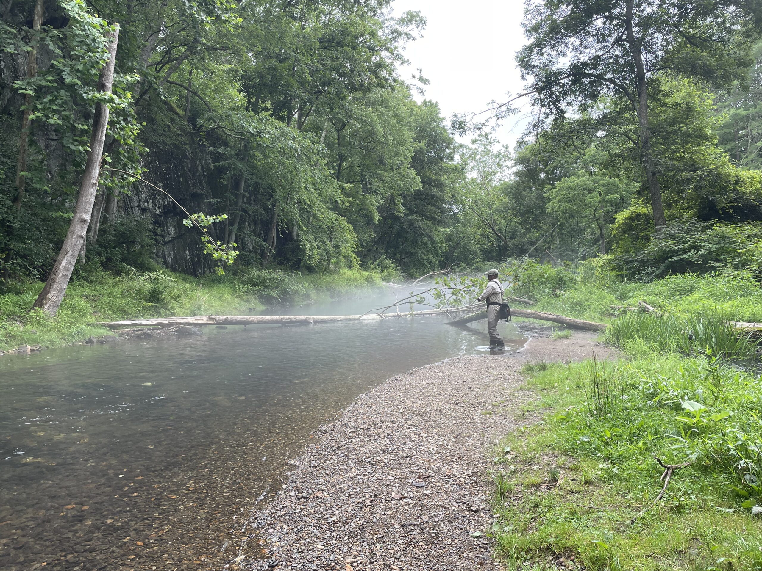 With Summer in full swing the fishing in the gunpowder has been great. Flows are still low at 34 cfs with temperatures ranging in the mid to high 50s at falls road. Anglers have had lots of success fishing with small caddis, beetles, and ants. These have been particularly effective throughout the mornings while targeting the riffles. Beetles and ants will continue to be productive into the fall and anglers will have the most success along the larger rocks, trees, and brush that lay in the gunpowder. With a bright sun and low water, it is important to minimize your wading and maximize your leader length. This will minimize the number of fish you spook by keeping your presence on the water subtle.