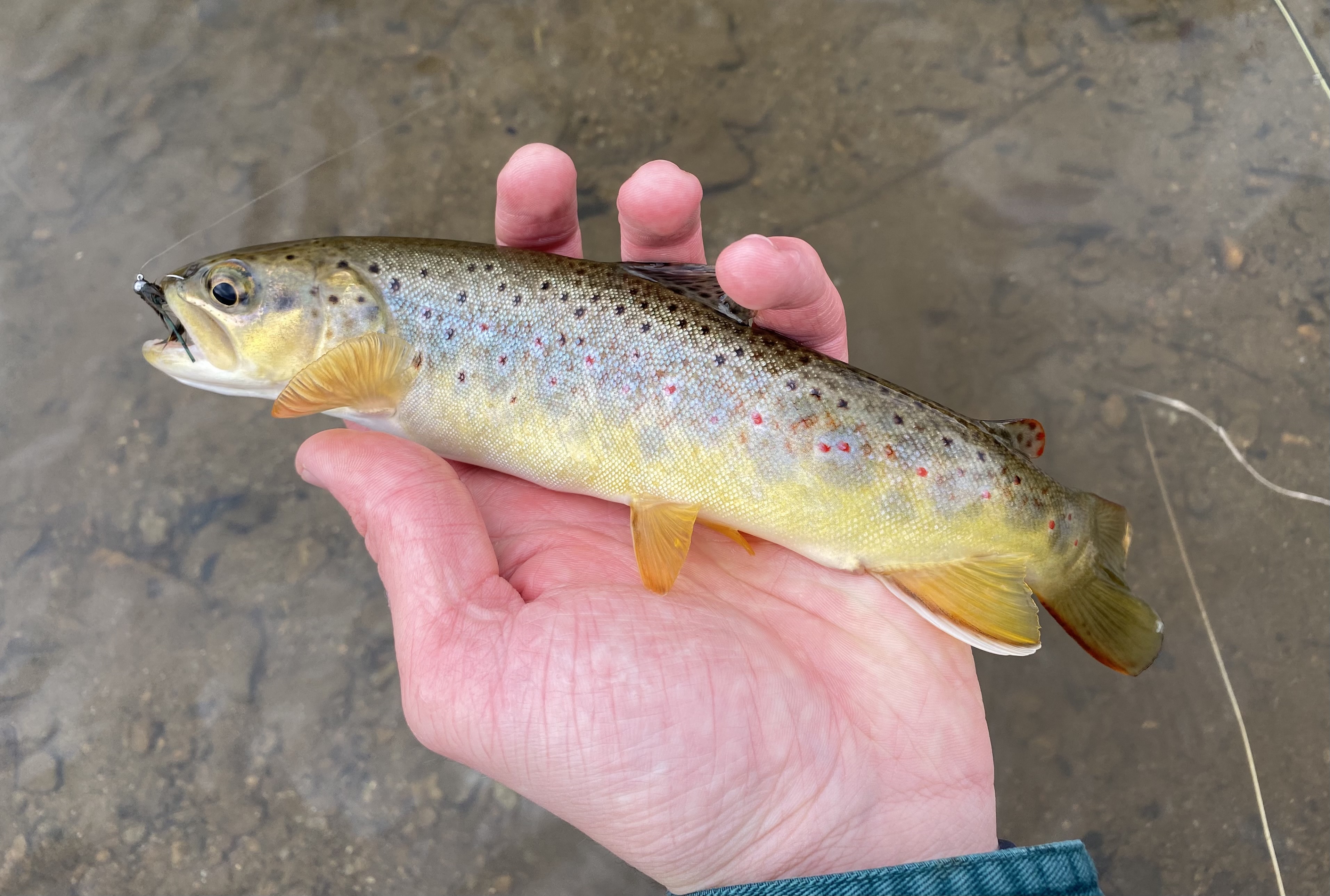While the flows on the Gunpowder at still at 19cfs and the temps fluctuating between 41 and 43 degrees the fish have still been active. we are finding that the fish are just about done spawning and they are looking for a big meal. We have been having lots of luck on smaller streamers like a black wooly bugger or Complex Twist Bugger. Pheasant tails and hares ears are still a good choice when nymphing. Zebra midges have also produced results. Make sure to keep and eye out for any redds on which with may still be spawning. Happy Holidays.